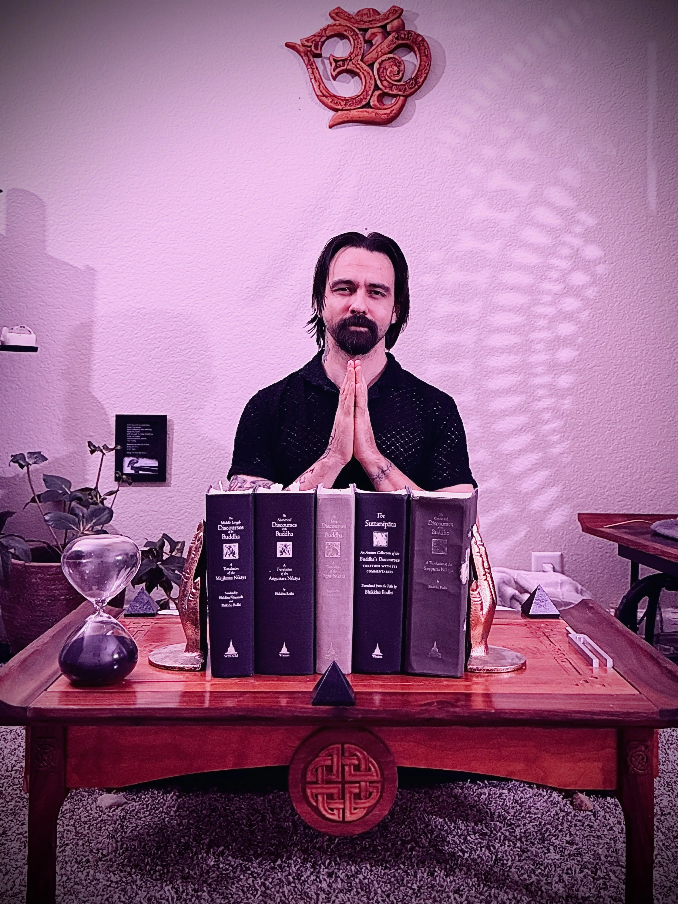 ..Colton has devoted much of his life to researching, practicing and developing and refining his method of teaching Dharma, devotional practices and meditative disciplines so that his method is as intuitive, applicable and immediately clear and comprehensive as possible for his students and patrons. He is deeply versed in systems of thought and practices of inner development and is a lifelong practitioner of meditation and a student of the systems found within Theravada Buddhism. He has over 3,500 hours of experience on intensive meditation retreats, in both monastic and lay settings, much of which has been done under a vow of silence, and some, also while fasting.. He has spent 13 years studying the Pali Cannon and Sutta Pitaka (the traditional Suttas of the Buddhas teachings) and is deeply versed in the many system within it. He also has a firm knowledge of world cosmologies, spiritual practices and related systems and practices to that of meditation and of the many wisdom teachings throughout our world…
